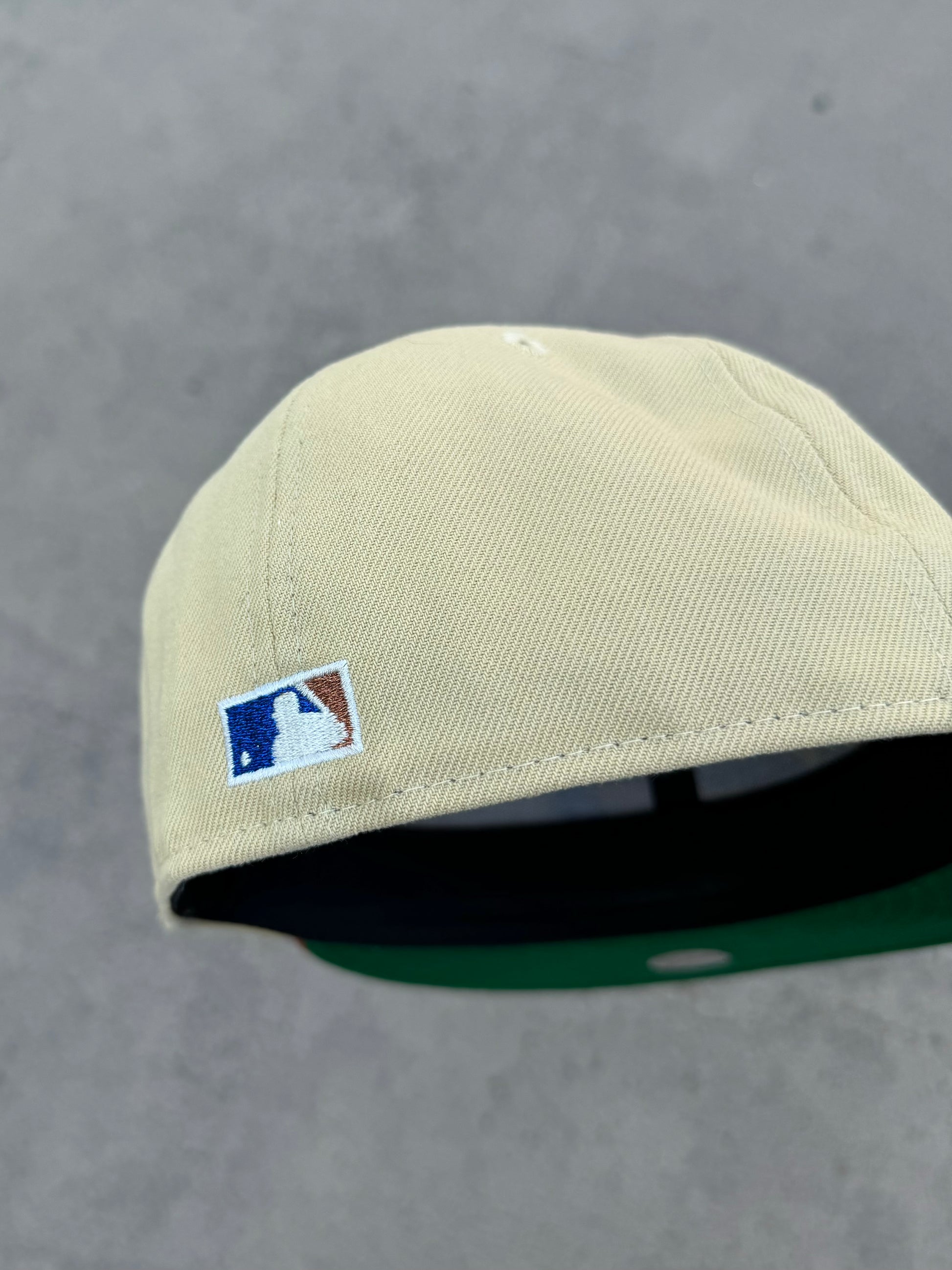 Chicago White Sox New Era 5950 fitted hat. Vegas Gold/Rust Orange 2tone. Kelly Green UV. Metallic Copper, Metallic Blue, Oceanside Blue, and White stitching. Black Sweatband. Made In China. 100% Polyester.